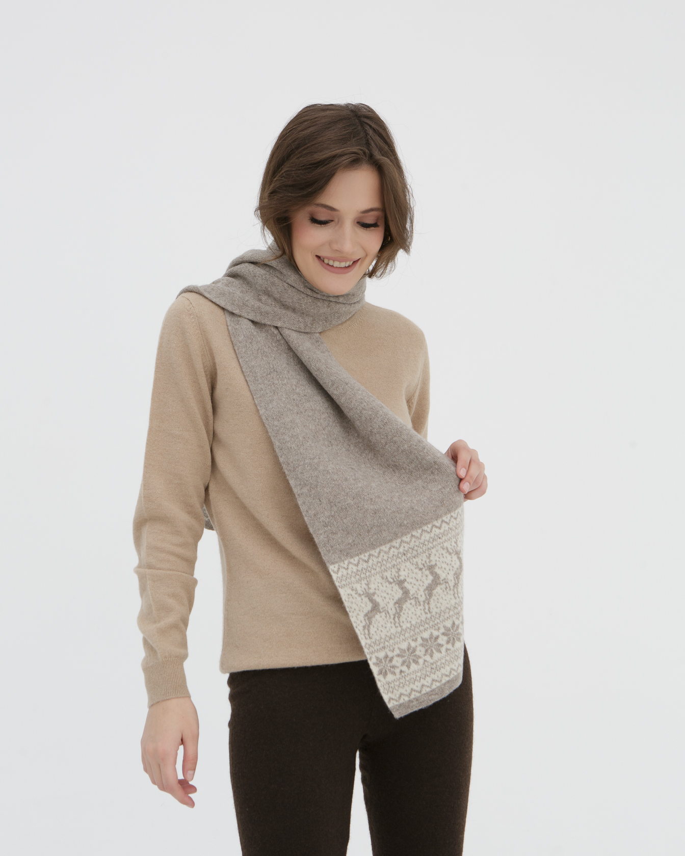 Все шарфы этой серии очень достойные. Взяла сразу два - себе и в подарок. Шарф очень тёплый (ношу сейчас на эту погоду), мягкий, но при этом - достаточно плотный. Размер под куртку или пальто - оптимальный. Греет хорошо, колется совсем чуть-чуть, через пару минут об этом забываешь и уже не чувствуешь. Расцветка и рисунок очень красивые, в скандинавском стиле, полностью соответствует фотографии.