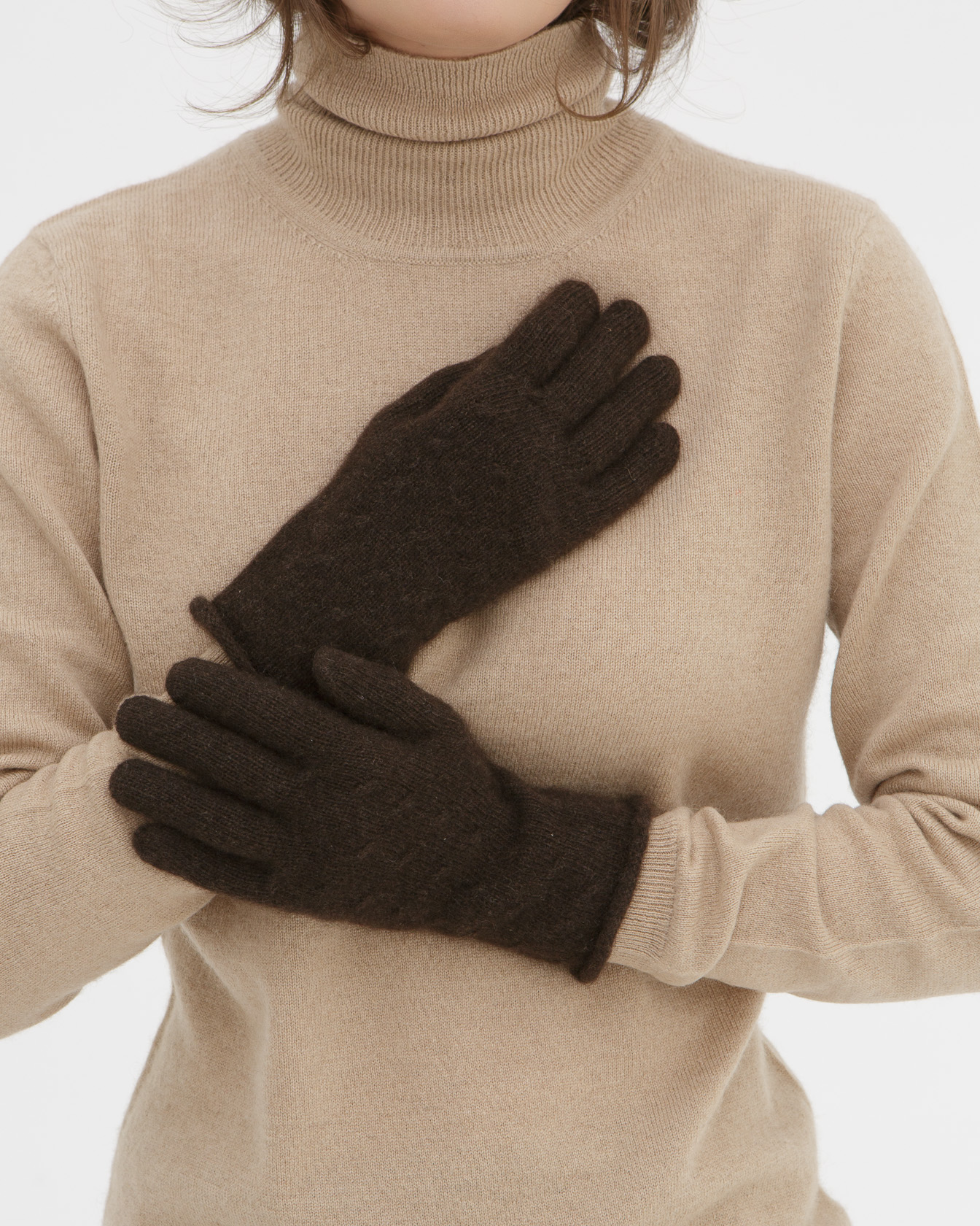 Перчатки из пуха яка UL PR темно-коричневые