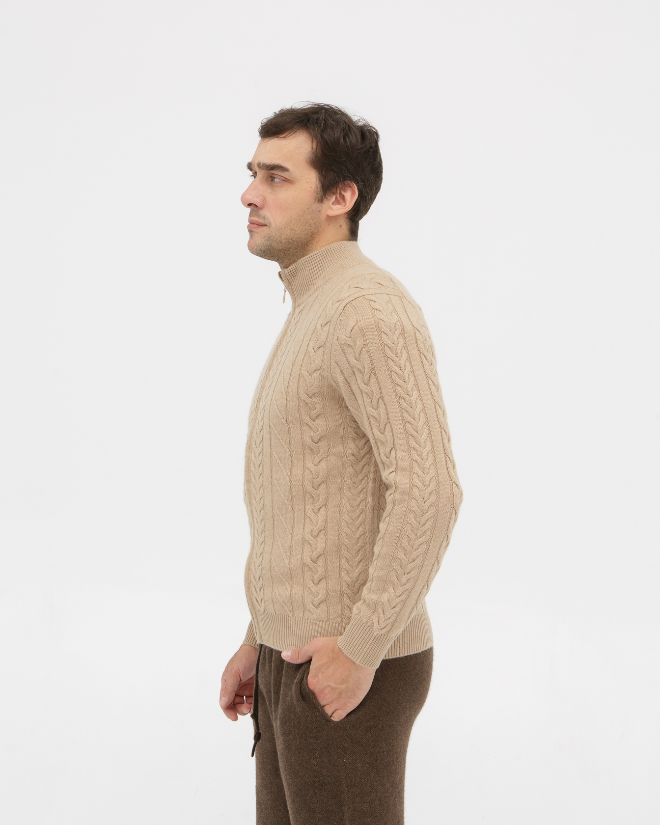 Бежевый цвет универсальный, подходит к любым брюкам. В Монголшопе всегда качество на уровне, брал тут раньше носки из верблюжьей шерсти. Джемпер теплый, но дышащий.