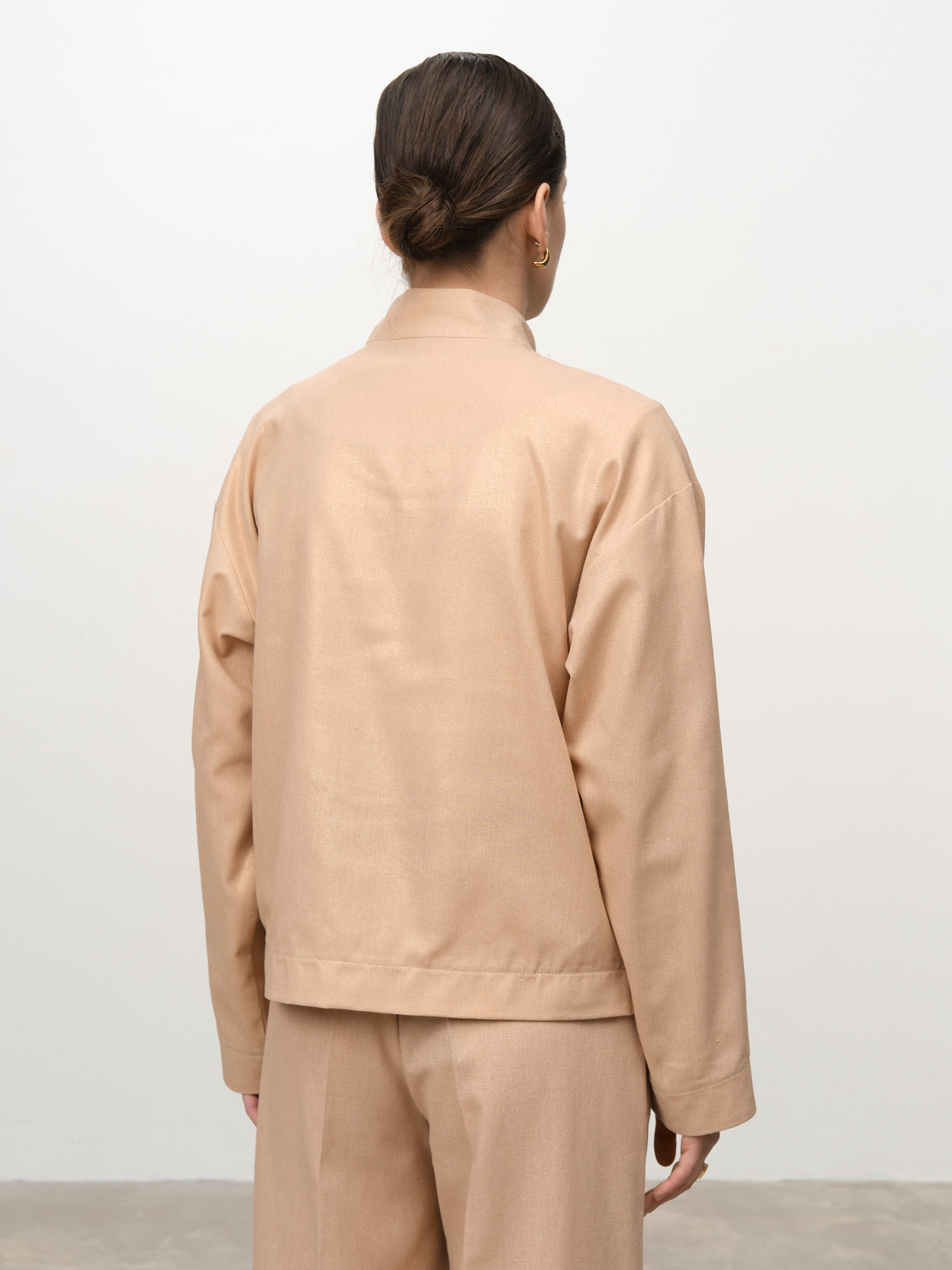 Идеально сочетается с брюками или юбками из льна, а также с базовыми топами и платьями. Подходит для повседневных и городских образов.